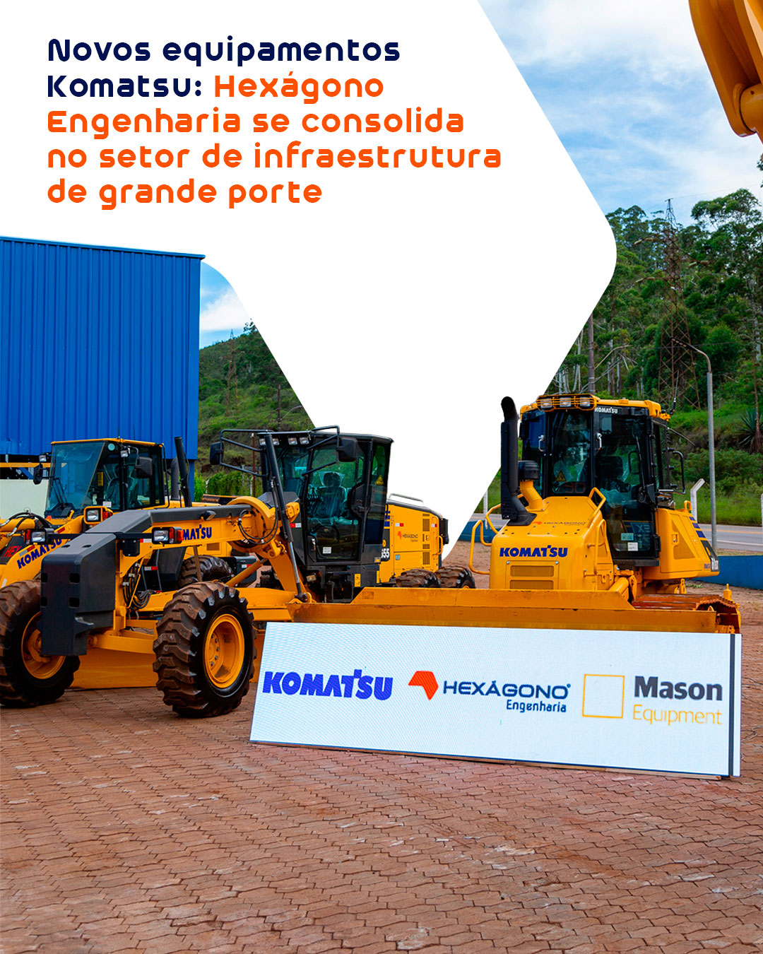 Ao reunir Komatsu, fabricante dos equipamentos, Mason Equipment, responsável pela comercialização, e a Hexágono, celebramos uma parceria construída com visão de futuro, confiança mútua e propósito claro: ampliar nossa atuação em obras de infraestrutura de grande porte.
