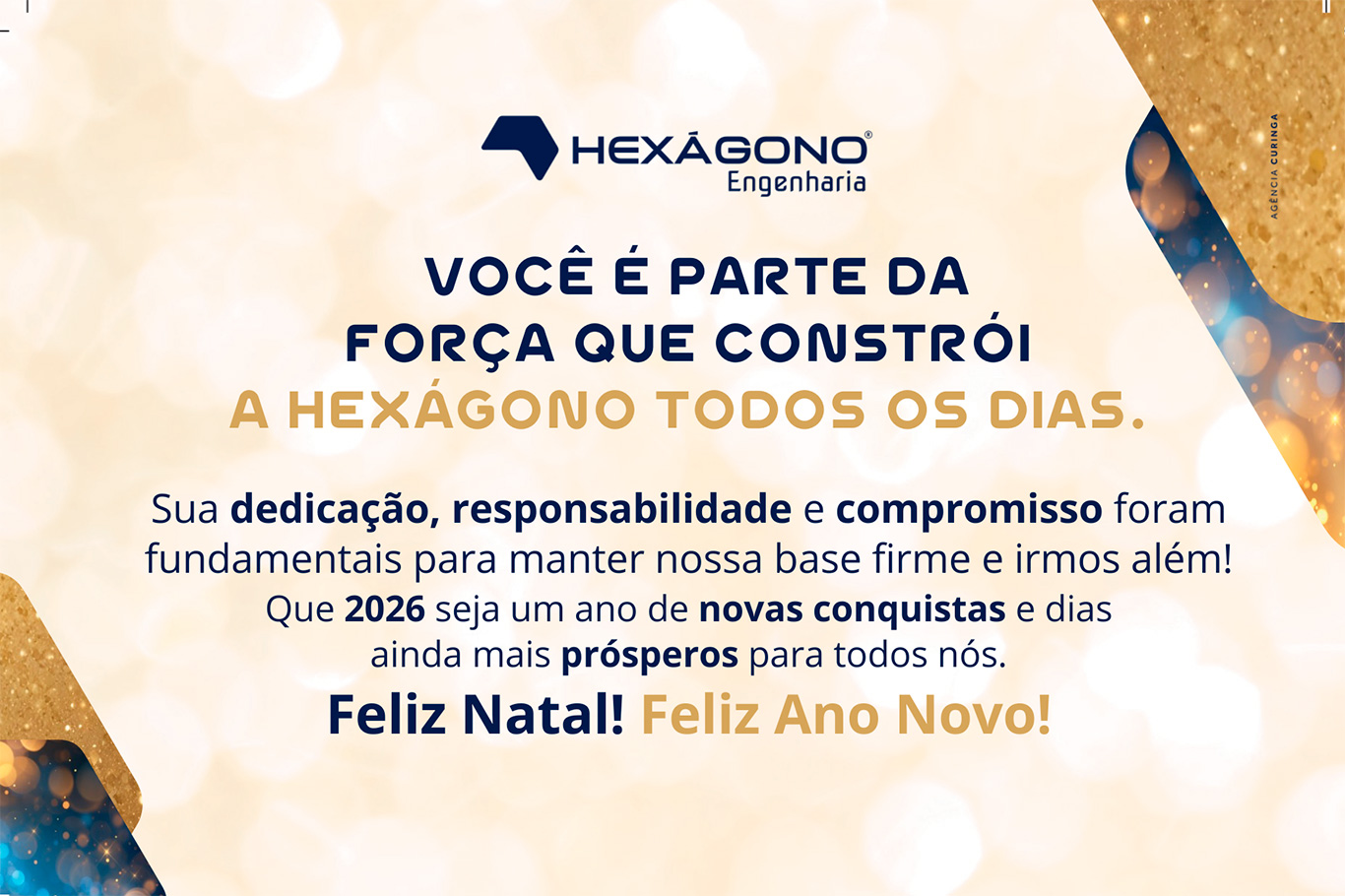2025 se encerra com muitos aprendizados, conquistas e a certeza de que cada passo foi construído com dedicação e parceria. Na Hexágono Engenharia, seguimos acreditando que resultados consistentes nascem do comprometimento das pessoas e da confiança de quem caminha ao nosso lado. Por isso, vamos entrar em 2026 com novos objetivos, visão estratégica e o mesmo compromisso com ética, qualidade e responsabilidade em cada projeto desenvolvido.