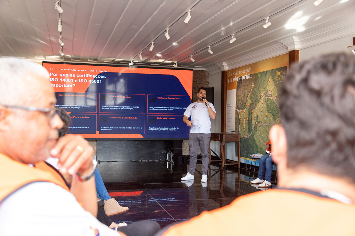 Também trabalhamos pautas estratégicas como mobilização de pessoas, gestão de consequências, integração entre SESMT e RH, nivelamento das normas de SSMA, gestão de EPI’s e uniformes, política de álcool e drogas, segurança no trânsito, telemetria e o equilíbrio entre produção e segurança.